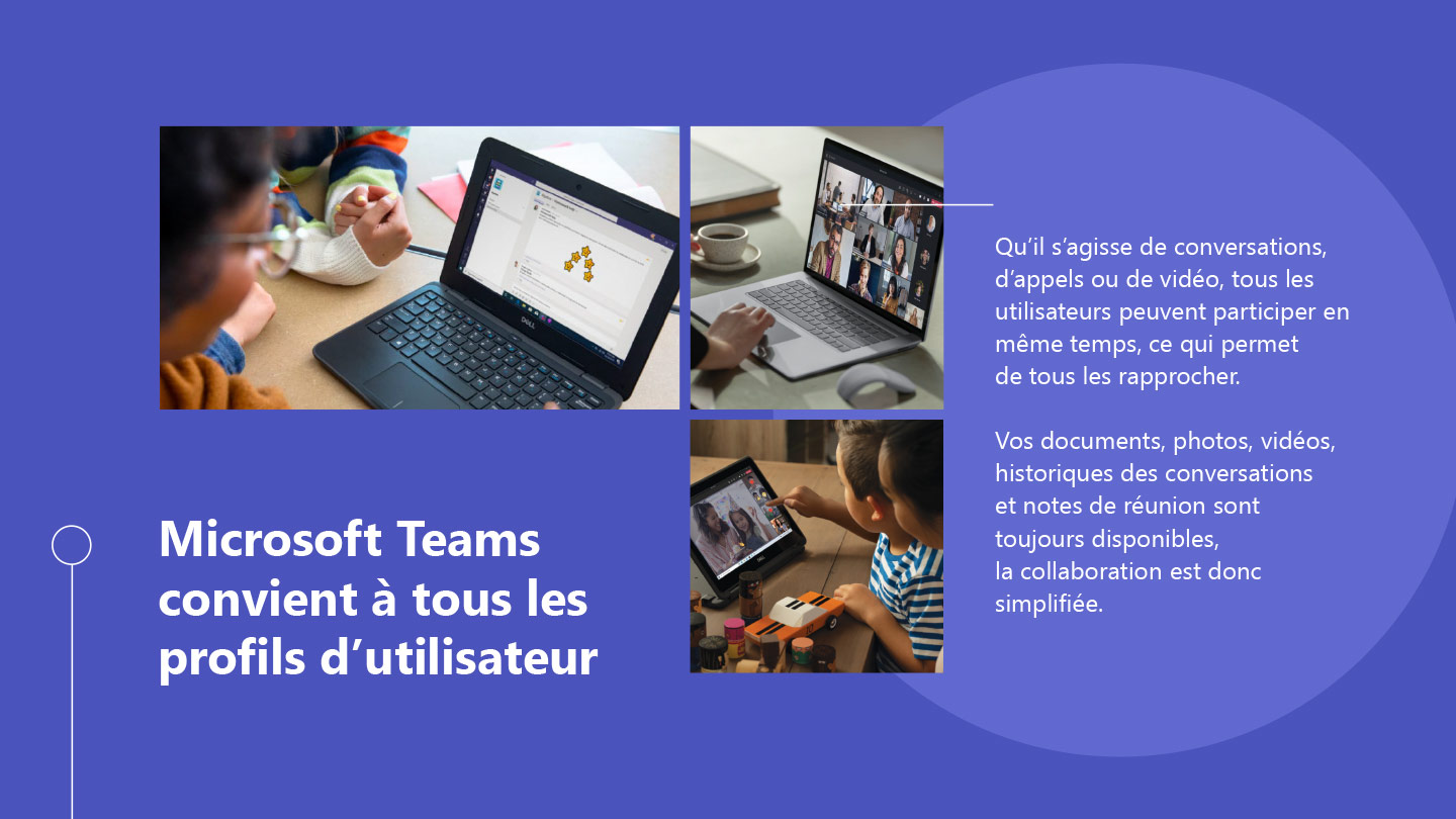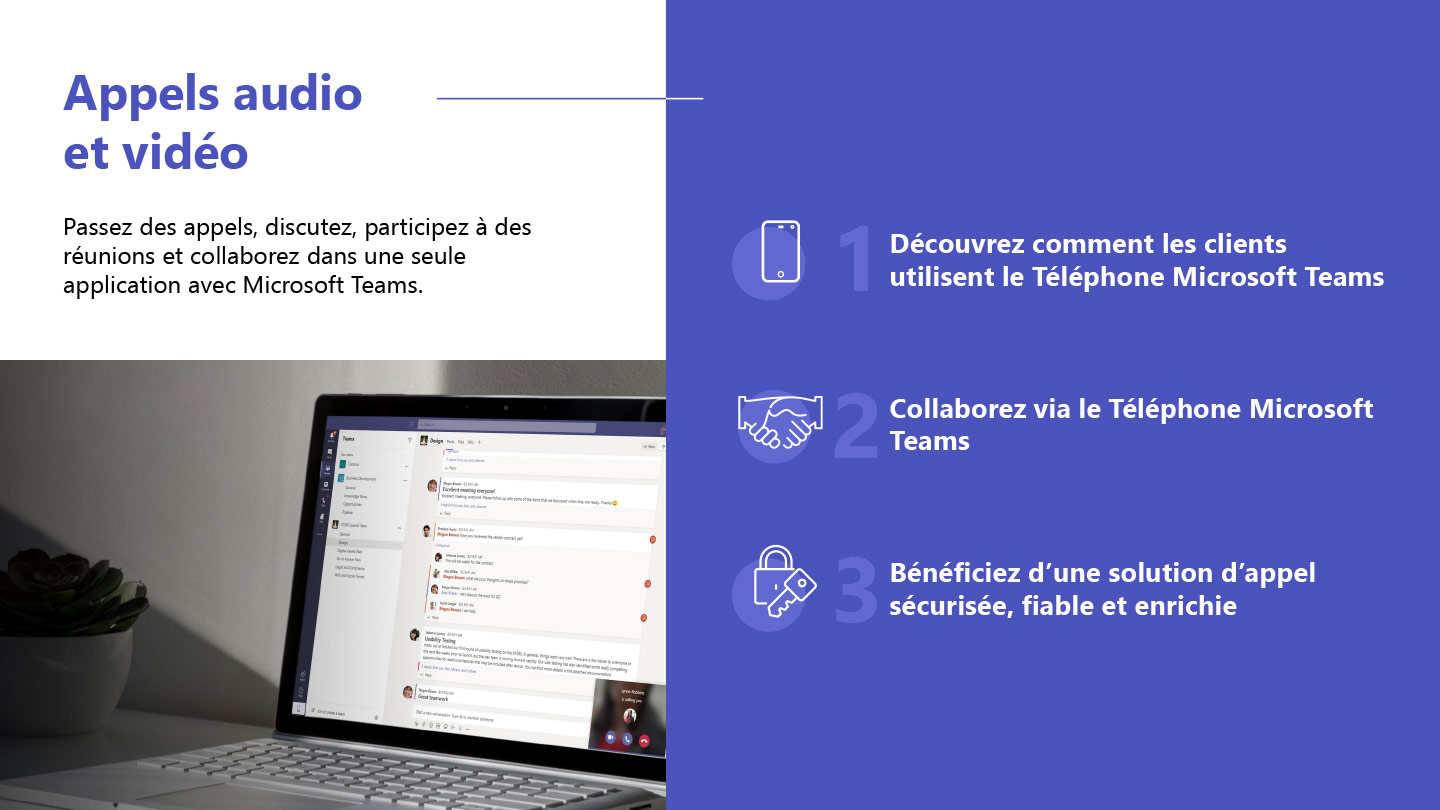 Microsoft Teams est l’application de messagerie idéale pour votre organisation : un espace de travail pour la collaboration et la communication en temps réel, les réunions, le partage de fichiers et d’applications et même l’emoji occasionnel ! Tout est regroupé au même endroit, ouvert et accessible à tous.